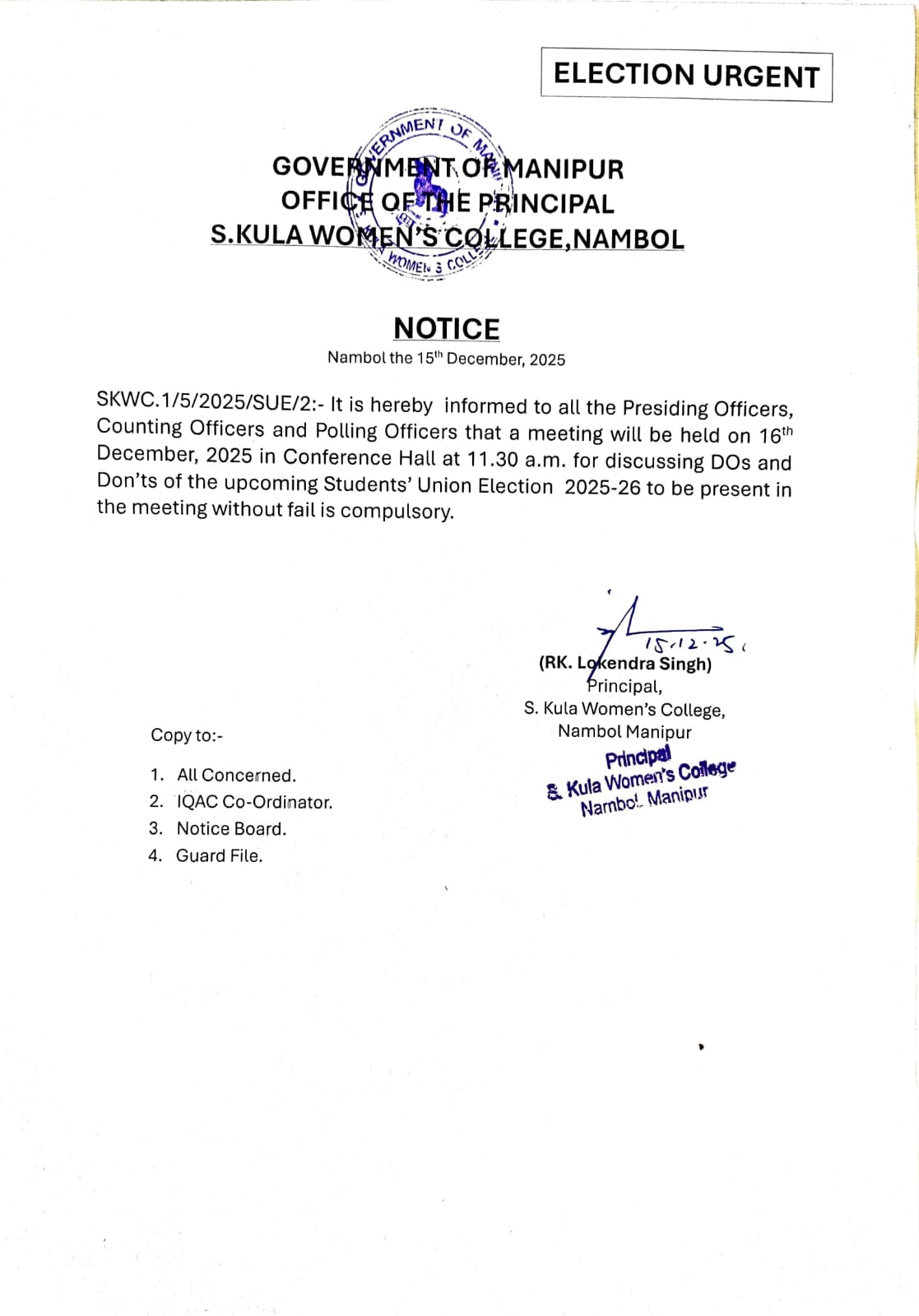 - Report for Students’ Union Election 2015-16